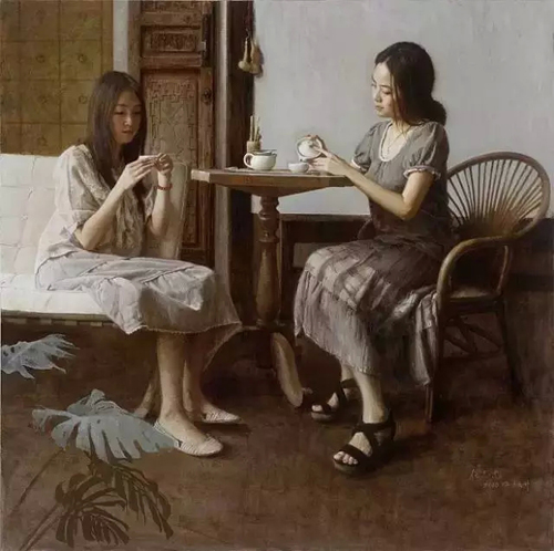 任志忠 《下午茶》布面油画 140×140cm 2010年
