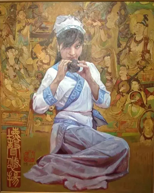 秦大虎 《埙声悠扬》布面油画 110×90cm 2015年