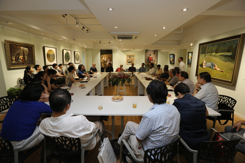徐芒耀:“学院”这个词很重要,整个欧洲一直在技术、体积、造型、空间、质量等方面做做功课,这条路很科学。学院里有批很重要的具象画家在画画,学院起着领军作用,不是仅仅为了画展而画画,现在写实画家缺少平台,浙江这样的画家应该有这样的平台,至于平台以后的怎么弄还要再协商。借助今天的机会,画家们要考虑下次再拿出来的作品是什么水准的,要从学术性上再推进。