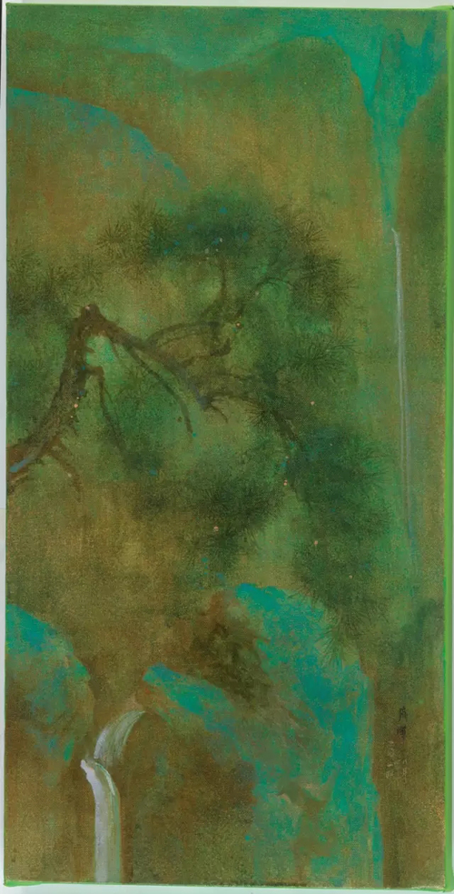 戚曄 《松壑飞泉》 70x35cm 画布 矿物颜料 2013