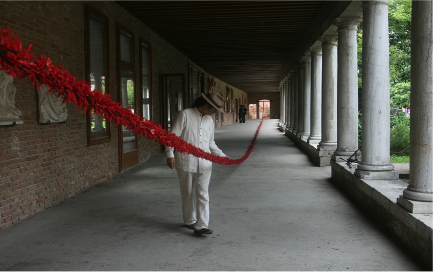他摒弃了文字的实用性,也就是抽离了文字内容的“叙事性”,而彰显了汉字的“形象性”,也就是文字作为视觉符号的“叙事性”,这种在观念层面上对文字“叙事性”意义的转化,使得他的作品既是视觉的迷墙,也是一种文化的迷墙,在那里,汉字的“身份”脱胎了原有的阅读形态而变成诉诸视觉的形态,引发起人们的阅读冲动而拒斥了阅读的可能。这种对文字的“抽象”处理方式对应了信息时代人们感知事物的经验,从而使他的艺术既超越已有的具象表述,也超越传统的“抽象”表述,成为一种崭新的视觉文本。