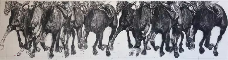 博尔森(法国)《铁马铮铮》 纸上炭笔 195x51厘米