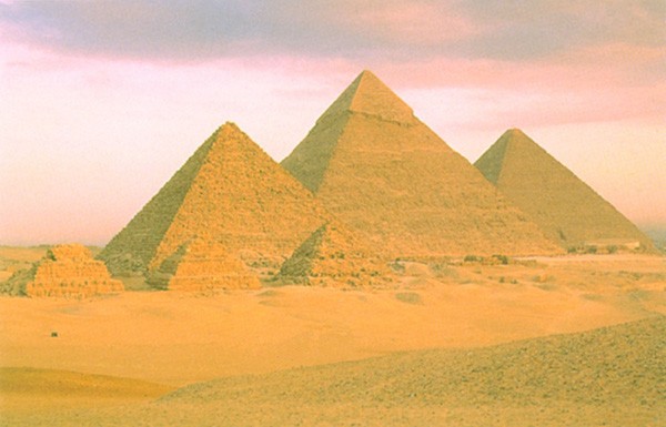 金字塔的构思反映古埃及人的信仰。他们相信高山、大漠、长河都是神圣的,法老王被宣扬为自然神。于是通过审美就把高山、大漠、长河的形象的典型特征赋予王权的纪念碑,在广阔大漠中金字塔显得高大、稳定、沉重和不可动摇,又显得单纯、简洁和雄伟壮观。它带着强烈的原始性,仿佛是人工堆垒的山岩、混沌未凿。它的形象和尼罗河的风光十分协调,大漠孤烟,长河落日,何其壮阔。