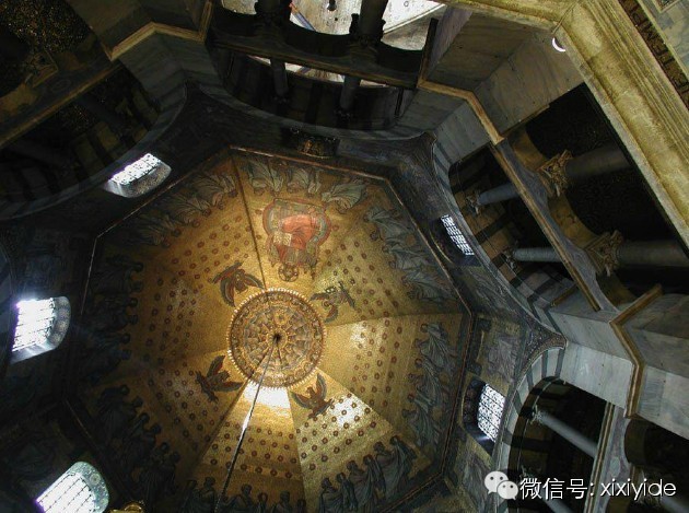 阿琛王宫是查理曼时代最重要的建筑工程,为了体现复古的愿望,王宫教堂的设计以拉文纳的圣维塔耳教堂为蓝本,平面布局和结构基本上保持了圣维塔耳的特点,但更偏重于统一性和整体性,显得庄重严肃。 查理曼死后,加洛林帝国随之完结,但“文艺复兴”的印象依然延续,特别是在号称“神圣罗马帝国”奥托王朝,继承了加洛林的传统,并发展出一种肃穆宏大的风格。