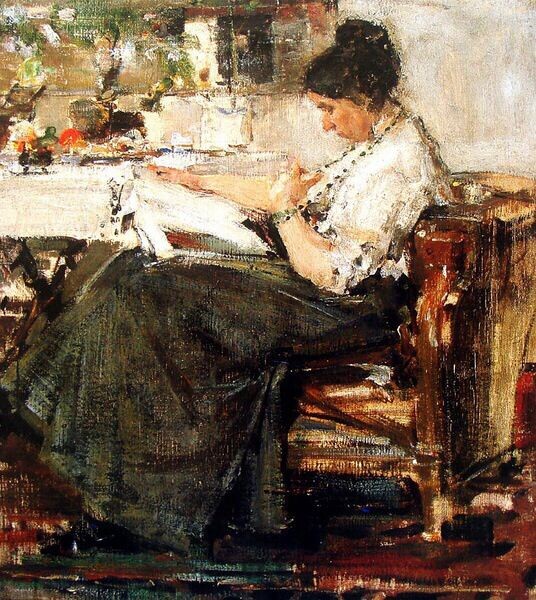 费钦擅长肖像画和风俗题材的创作。他用笔奔放、流畅;画面时而是颜色强有力的堆积,时而是轻轻掠过留出底色;时而用刮刀和手代替笔;使画面产生不同的肌理效果,整个画面色彩响亮、饱和;对比鲜明,格外诱人,好象一部色彩交响曲,耐人寻味;费钦在美国走完了他的艺术之路。脱离民族传统,远离故土,对他来说无疑是场悲剧,但他的艺术成就在俄罗斯美术史上有着不可磨灭的地位。