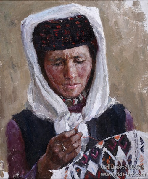 绣花的塔吉克族妇女(45.5cmX38cm 2006年)