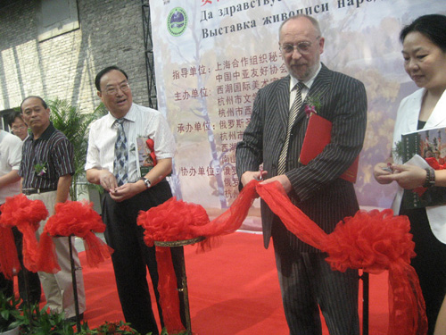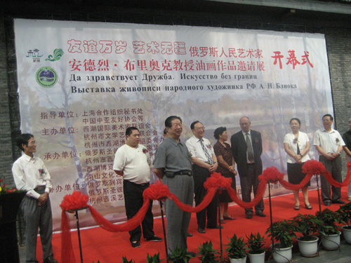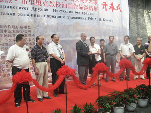近年来,布里奥克教授还多次应邀来中国杭州出席“画说西湖·国际美术论坛”系列活动,他对西湖和杭州人民有着深厚的情感。这次布里奥克教授来访杭州,就是应上海合作组织和杭州市政府邀请来举办他的个展。布里奥克教授的个展于2010年9月18日在西湖博览会展览馆(北山路40号)开展,开展当日,他就来到西溪艺得美术馆访问,,和藏家进行热烈的交流,并签名赠送画册给藏家和美术爱好者。