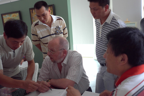 图片10. 布里奥克教授参观西溪风情花园,并和从事对俄贸易40年的一期业主周先生合影。