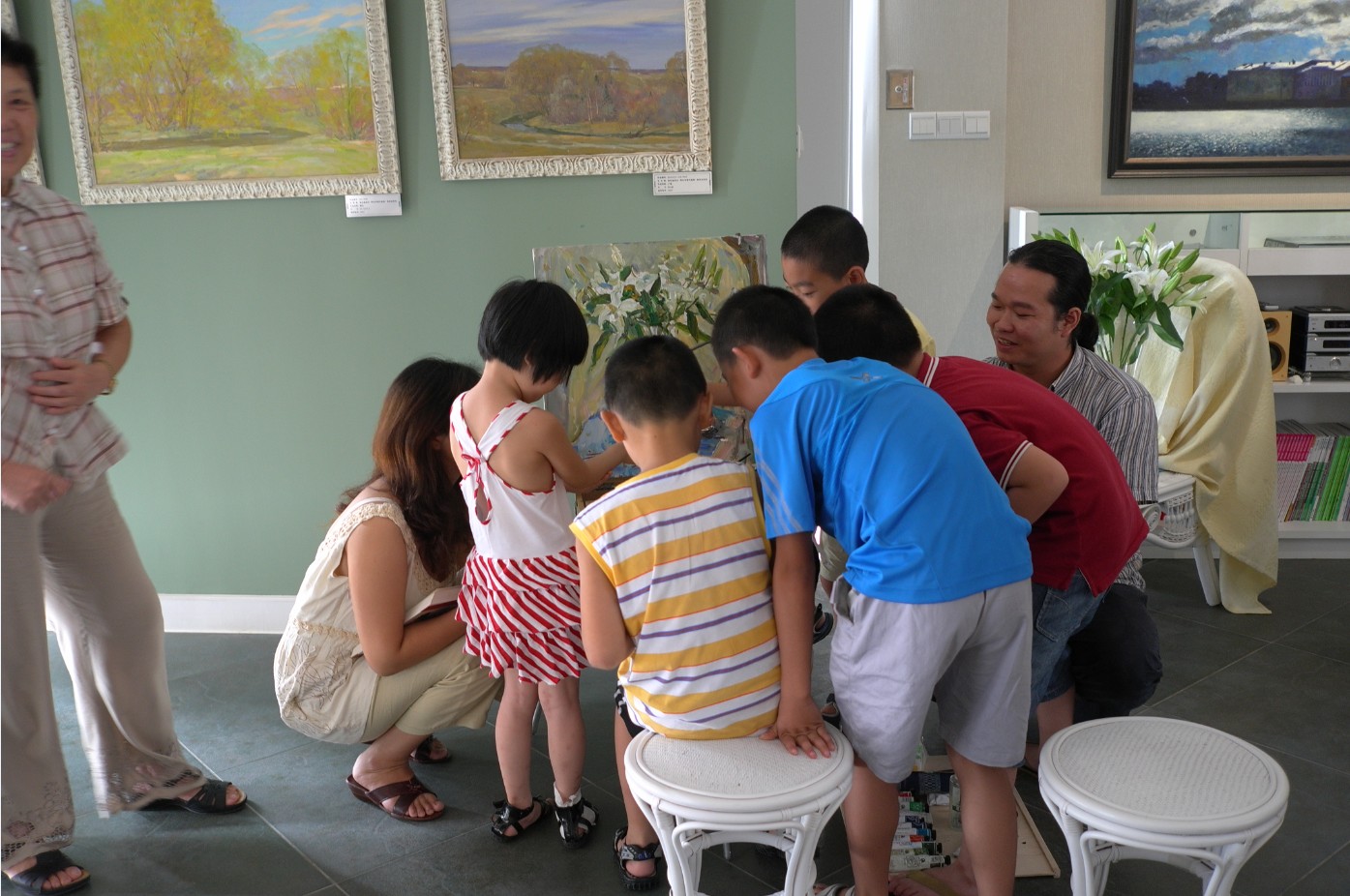 2010年08月21日 西溪艺得美术馆举办青少年油画讲座,10多位青少年在家长的陪同下参加了这次生动有趣的油画讲座。毕业于俄罗斯列宾美术学院并获学院奖的著名青年油画家张谢雄先生给青少年详细讲解了油画的产生、特点、绘制过程,并现场作画,以让青少年见习油画的创作过程。孩子们通过一个下午的学习,增加了油画的基础知识,得到了美术熏陶。最后,孩子们还并兴奋地拿起画笔,感受油画颜料的调制和笔触。