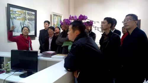 来宾在一幅幅油画精品前热烈交流对作品的理解与感受。