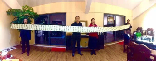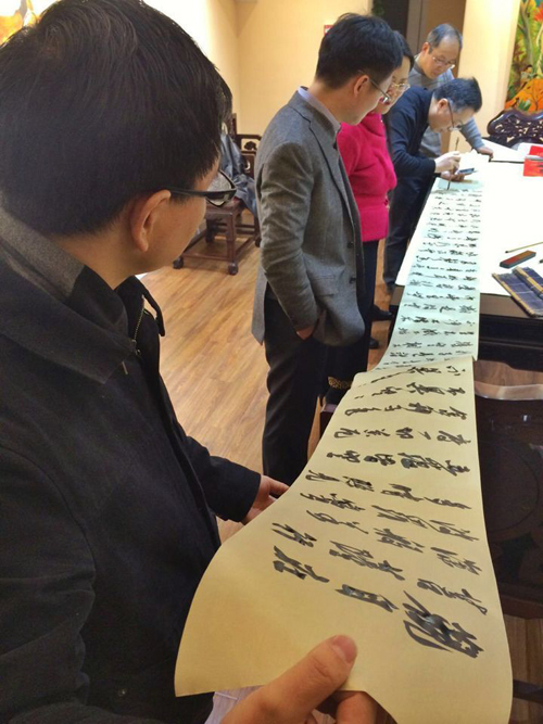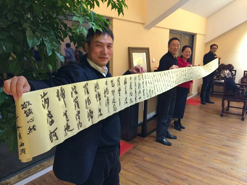 论坛之后的“求是雅集”活动更是精彩。雅集书法家们纷纷提笔挥毫,社长童亚辉更是当场书写心经长卷赠送艺得,以表达雅集对艺得承办这次年会活动的感谢!