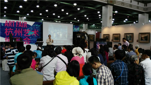 艺博会第四天上午,西溪艺得美术馆刘馆长在会展中心以《世界油画发展脉络及俄罗斯油画鉴赏》为主题发表演讲,她用柔美的语调为听众藏家们娓娓道来大量油画领域的专业知识和历史脉络,并与来宾积极互动,观众爆棚,现场气氛十分愉悦。