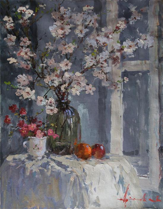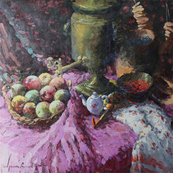 拉申德•阿德格莫夫1971年毕业于别拉姆美术师范学校,1975年至1982年在圣彼得堡穆欣娜高等工艺美术学院继续深造。 对光与色的极端敏感为拉申得赢得了众多青睐,获得了俄罗斯现代印象派大师的美誉。这一点特别体现在他的静物画里。