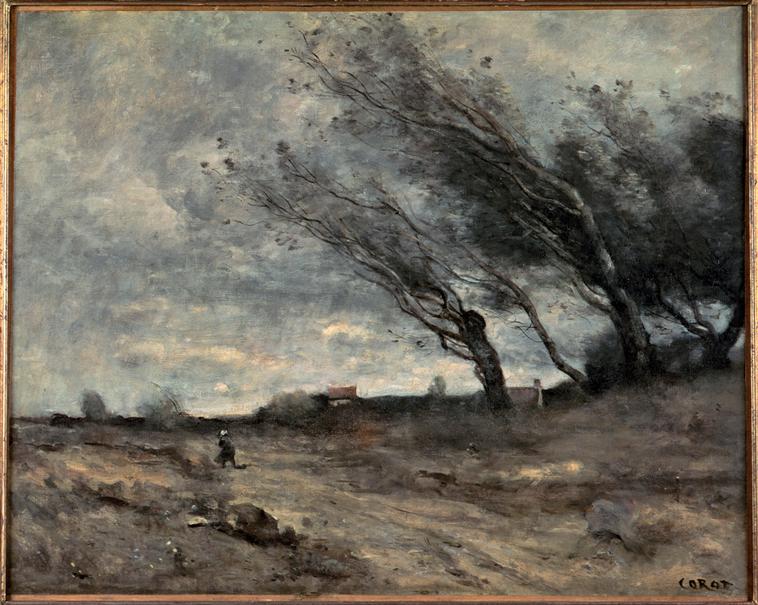 柯罗 《风起》 布面油画 47.4X58.9CM 现藏于REIMS美术馆